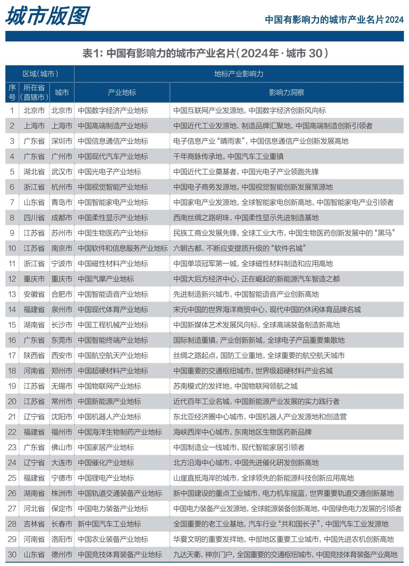 资料来源:《2024中国有影响力的城市产业名片》 制表:于宗文